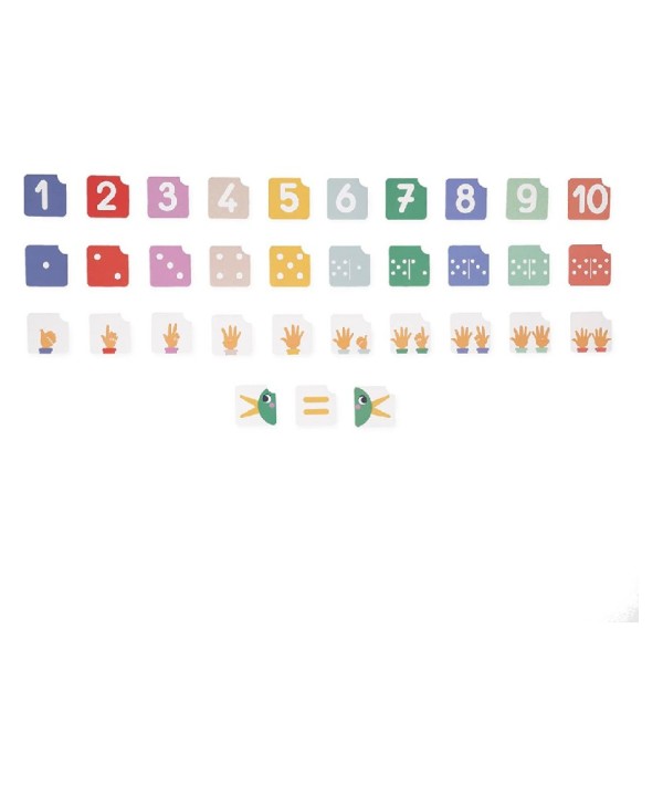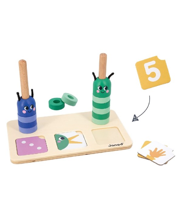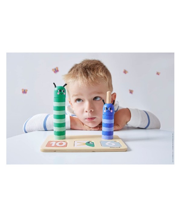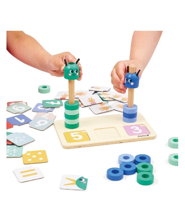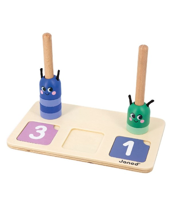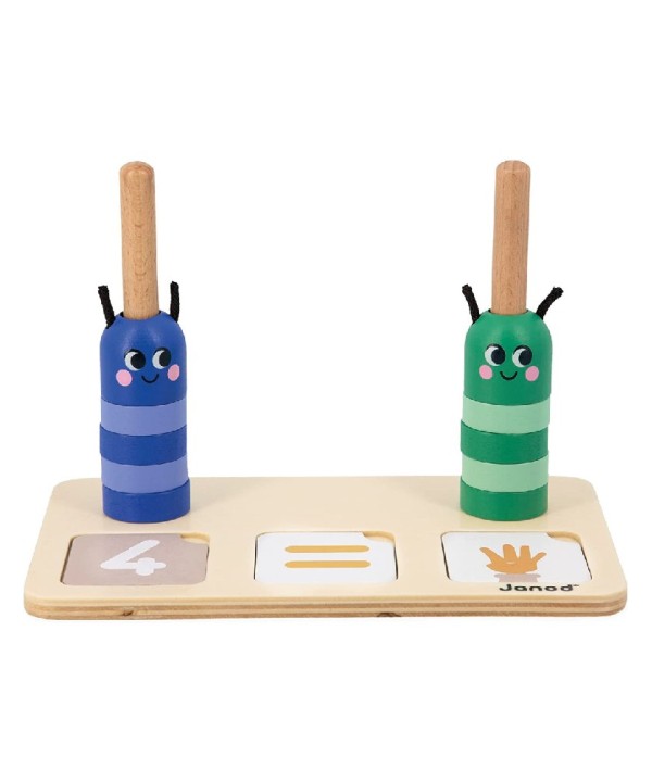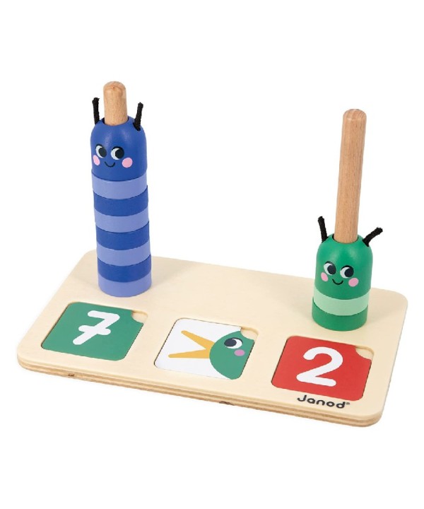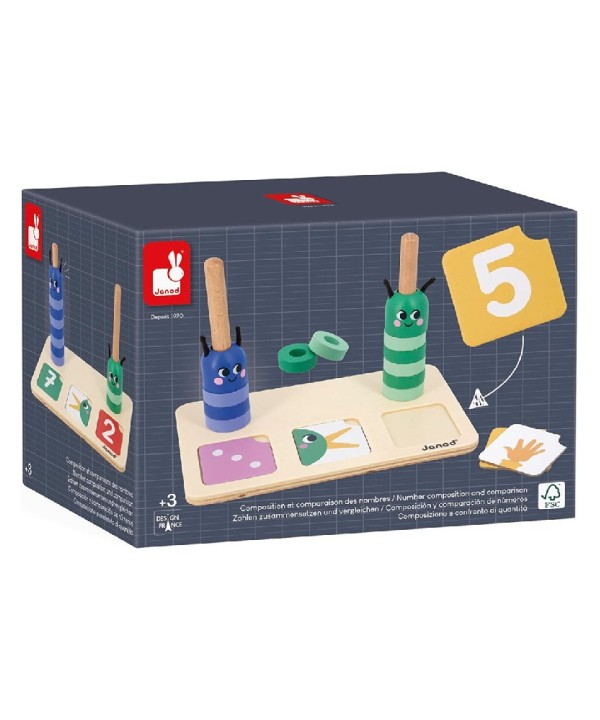 Juego pedagógico Composición y Comparación de números de Janod , este juego de madera permite a los niños a partir de 3 años aprender a reconocer números , compararlos y expresar la cantidad.